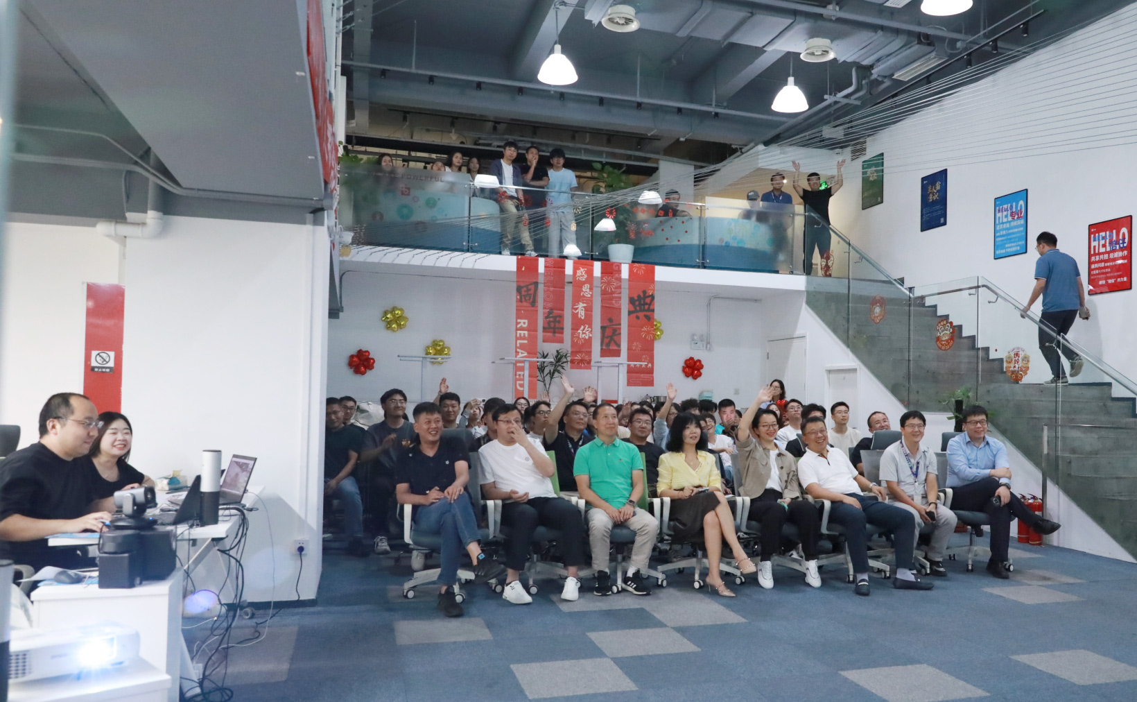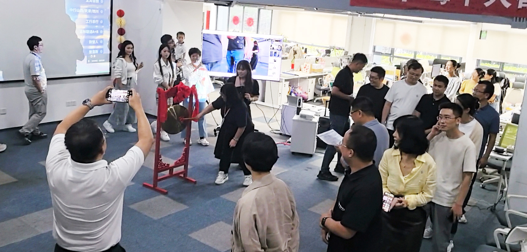 熟悉的敲锣古板如约回归!项目功勋成员配合敲响庆功锣,,,,,,锣声里是对过往的喝彩,,,,,,更是对未来的期许。。。。合影定格优美,,,,,,高管与部分认真人共切五周年蛋糕,,,,,,为盛会画上圆满句号。。。。